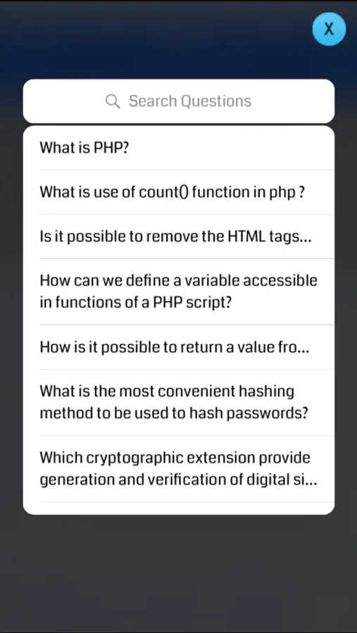 This an application that has many frequently asked PHP Interview questions with answers. Gathered from numerous sources including real interviews. Great for both an interviewer to quickly come up with questions. Great for brushing up technical interview questions before an interview.