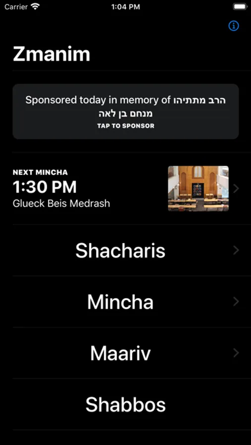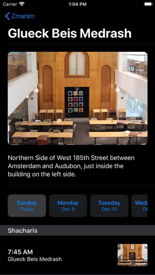 Looking to find a minyan at Yeshiva University? You've come to the right place. Zmanim for YU helps you find a minyan any time of day across the YU campus with a simple and easy to use interface. Sit back, download the app and, of course, enjoy the minyan.
