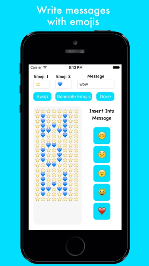Write messages to your friends using emojis! Contains every letter of the alphabet and some special characters. You can also make emojis out of emojis!
