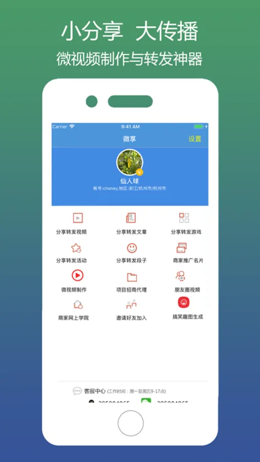 微享-小传播,大分享,移动网络时代广告传播新业态,微视频、短视频已成营销热点,制作属于自己的微视频等是现如今必备的软件 ,同时转发小视频,小游戏,生动文章自动植入广告做营销推广,新的传播方式,新的营销软件,广告制作传播利器,微信朋友圈小视频快速传播,一键分享微信、微博,一键转发软件更是微商或是中小企业所需要的。