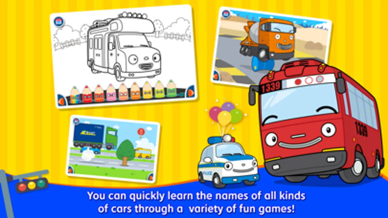 while playing the Little Bus Tayo, Police Car Pat, Sports Car Speed, and Ambulance Alice.