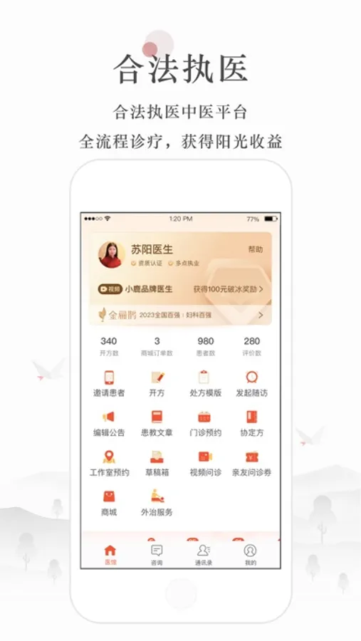 - 自定义个人医馆,图文、电话自主选择,免打扰时段自由控制,碎片时间充分利用