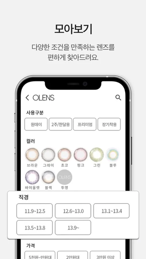 직관적이고 편리한 경로로 검색하고 상품을 확인하면서 맘에 드는 렌즈를 찜해보세요.