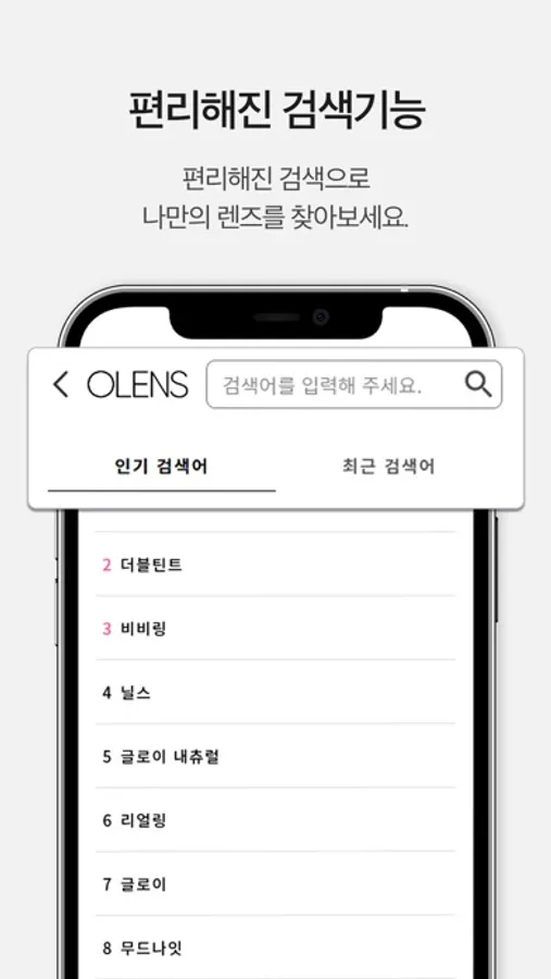 편리해진 연관 검색어와 함께 다양한 조건을 만족하는 나만의 렌즈를 찾을 수 있어요.