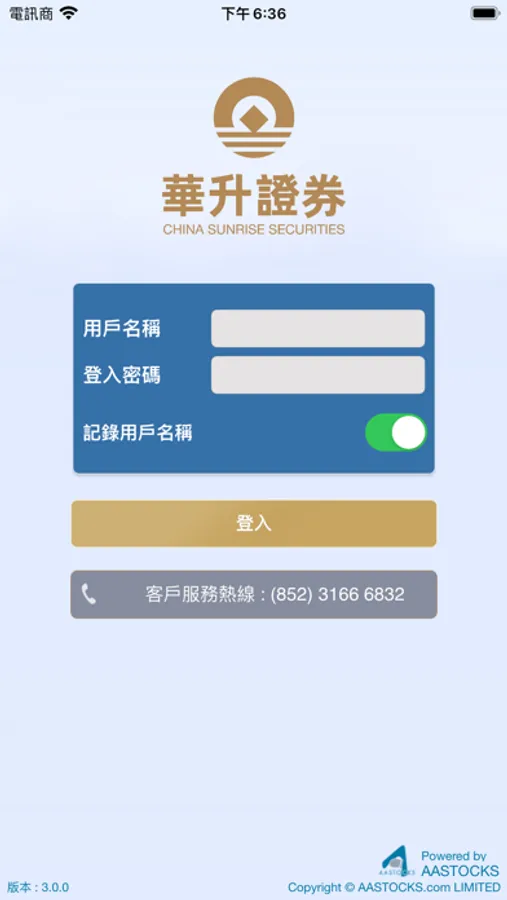 华升证券网上交易客户,可实时利用现有客户号码及密码登入。如有查询请即致电客户服务热线(852) 3166 6832 或中国免费直拨热线4006 888 318查询
