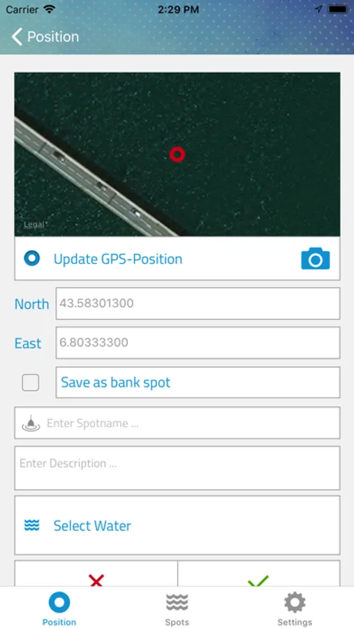 You can save an unlimited number of waters containing an unlimited number of spots. Use significant names for your spots and add optional annotations for example "works best in autumn." So after years, you will still know if this spot was the plateau, the sloping edge or the bed of mussels.