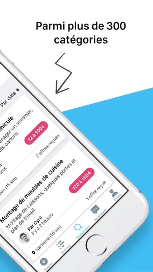Pas le temps, pas l'envie ou pas forcément les compétences ? Gratuitement et en un clic demandez de l'aide. Déléguez vos petits travaux à un jobber expérimenté de notre communauté. Publiez votre annonce en 1 minute, et une alerte sera envoyée à tous les bricoleurs compétents proches de chez vous. Ils vous feront des offres, en cohérence avec la fourchette de prix définie par notre outil d’estimation en ligne. Sélectionnez VOTRE bricoleur pour réaliser votre mission.