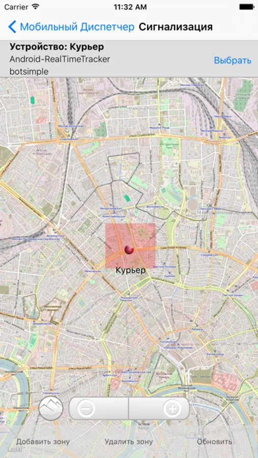 2. Режим "Сигнализация". Приложение позволяет создать гео-зону вокруг текущего местоположения трекера. Машины, дети, пожилые родственники будут под присмотром, где бы они не находились. При выходе трекера за пределы установленной зоны вам незамедлительно придет уведомление.