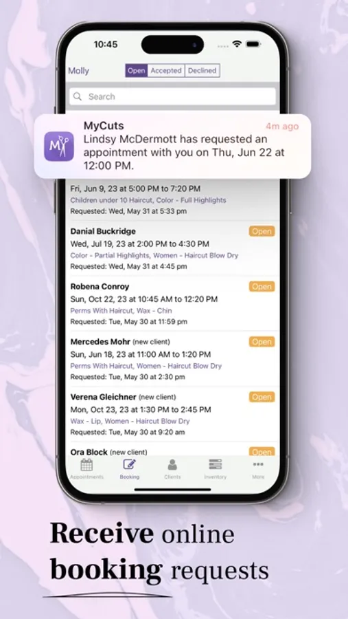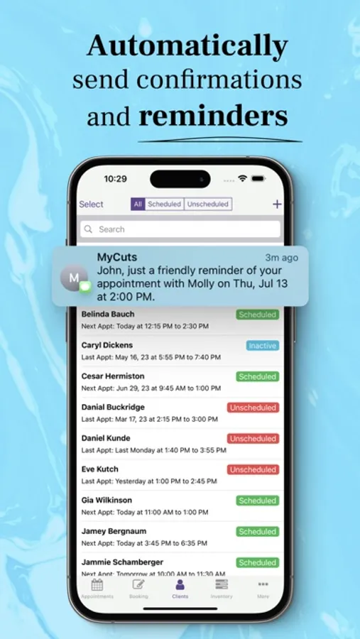 More than just an appointment scheduler, MyCuts comes with across-the-board business management tools so you can seamlessly track appointments, client information, inventory, and more all on one platform.