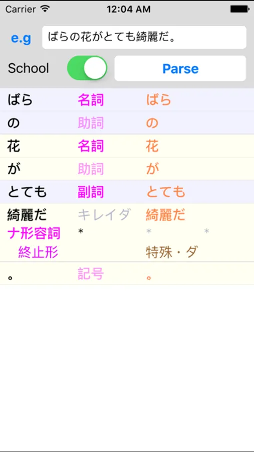 The analysis engine is MeCab that has been developed by Kyoto University.