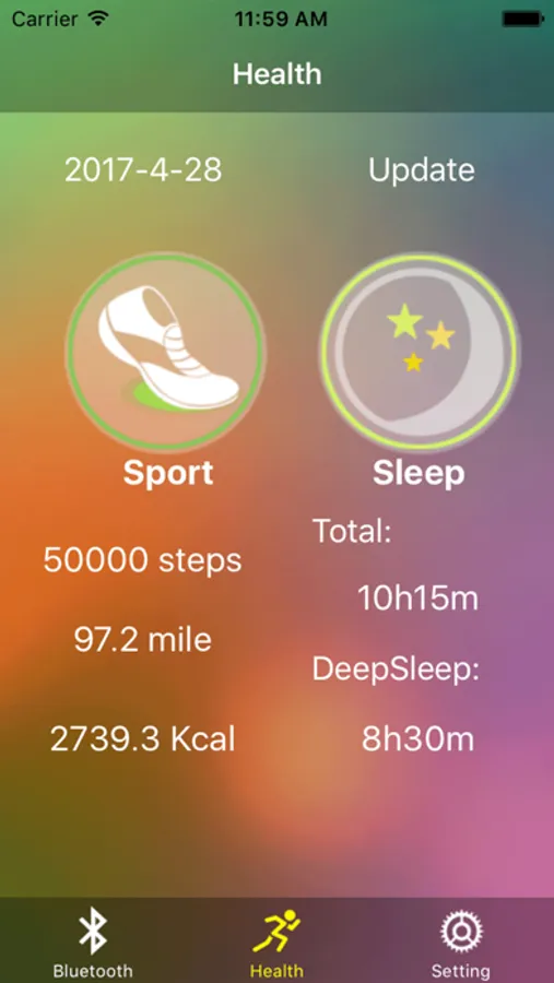 Across to bluetooth low energy connected, show the healthy data of bluetooth watch.