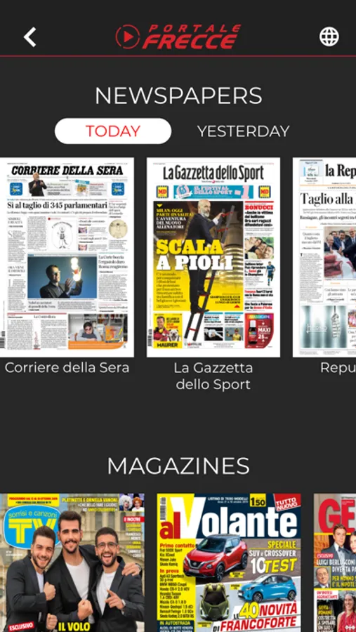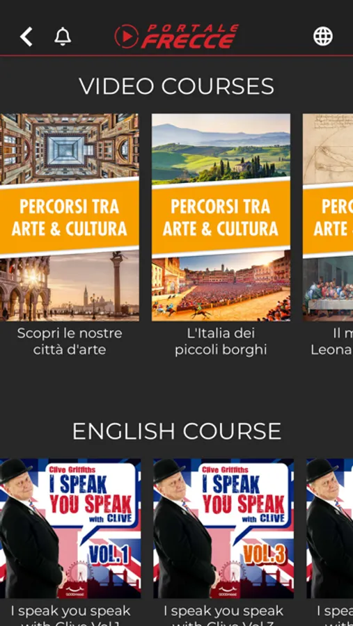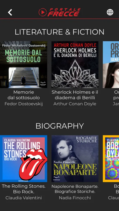 Download the app to preview the content catalogue. The services can be used only if connected to the WiFiFrecce network.