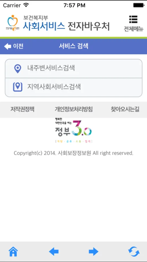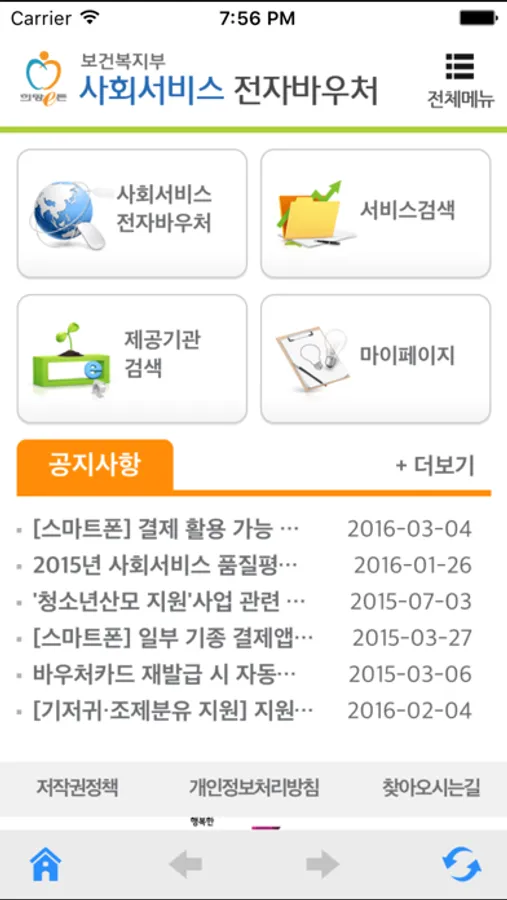 사회서비스 전자바우처 포탈(www.socialservice.or.kr)의 모바일 버전이며, 모바일에 특화된 서비스도 추가 제공합니다.
