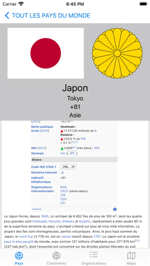 Tout les pays du monde est l’application le plus complet pour avoir des références dans tous les pays du monde et les organisations internationales,