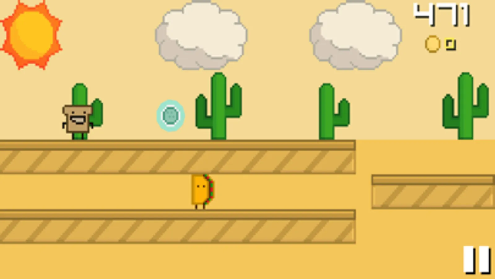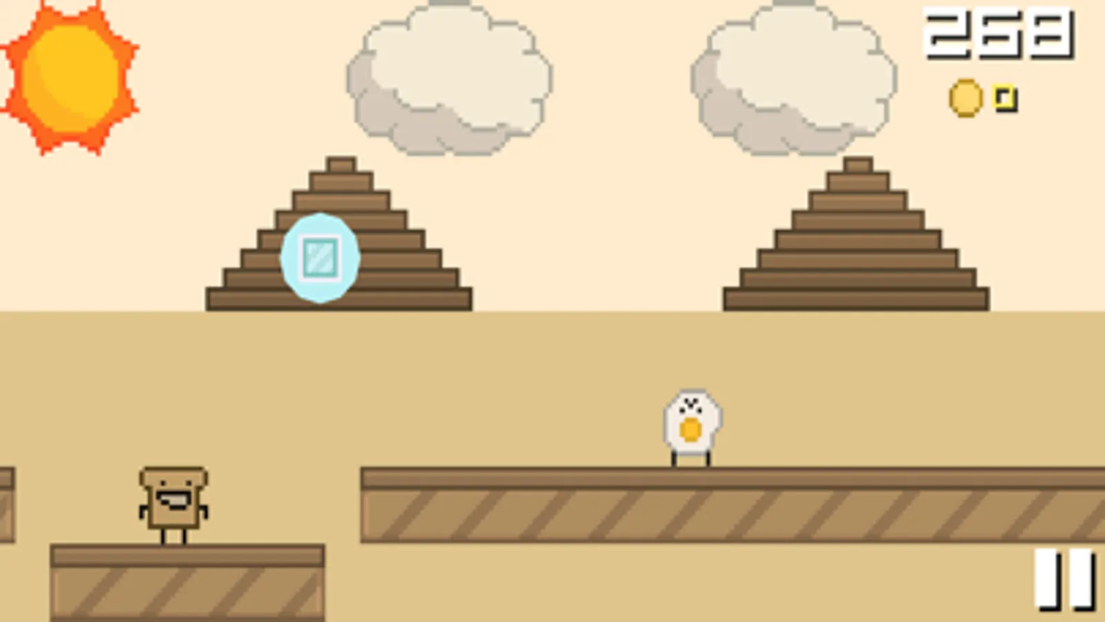 Journey through different worlds as Fred, a charismatic piece of bread who's goal in life is to not become toast. In this side-scrolling adventure you will battle against numerous foods and enemies alike as they try to turn you into toast. You can attempt to beat every high score in 8 dynamic levels, enjoy beautiful, elegant, and simplistic graphics, and even brag to your friends about your mad "Toast!" skills! Toast has several features including: