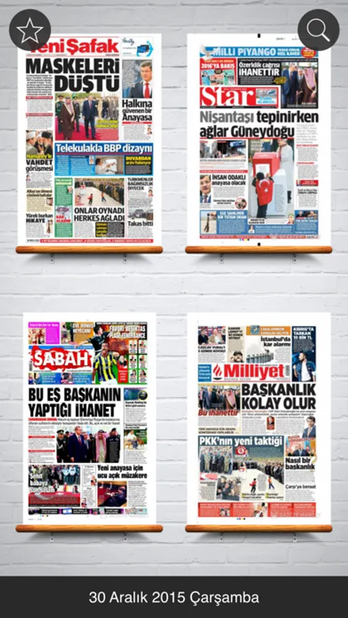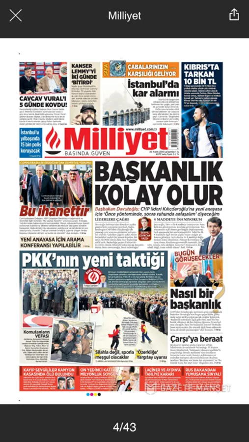 Uygulamamız sayesinde 43 gazetenin birinci sayfalarına ulaşabileceksiniz.