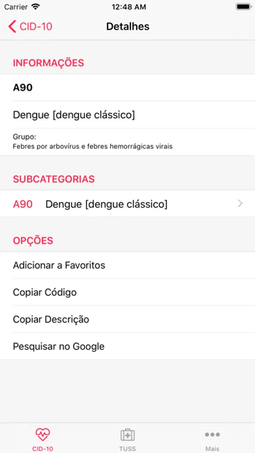 - Copie os códigos e descrições para a área de transferência, podendo facilmente "colar" em anotações, e-mails ou qualquer outro lugar que precisar.