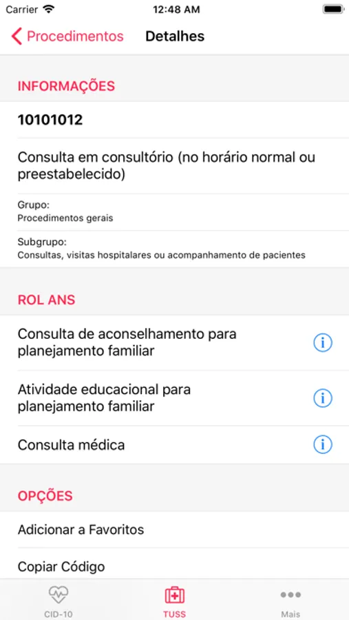 - Consulta aos Procedimentos TUSS, incluindo códigos, descrições, grupos, subgrupos e referências aos Rols de Procedimentos da ANS correspondentes.