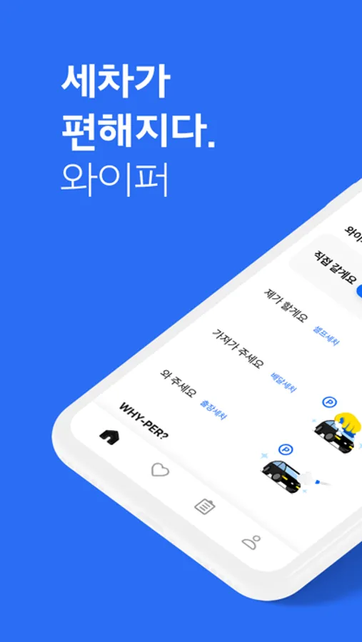 - 와이퍼 앱을 통해 주차 된 장소에서 세차가 해결 됩니다.