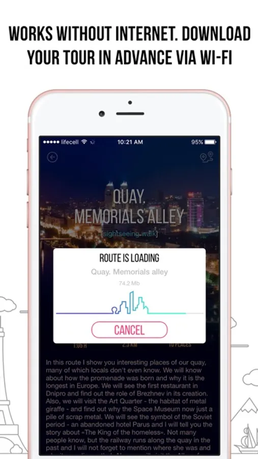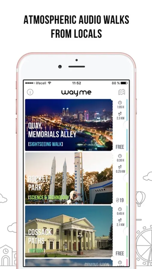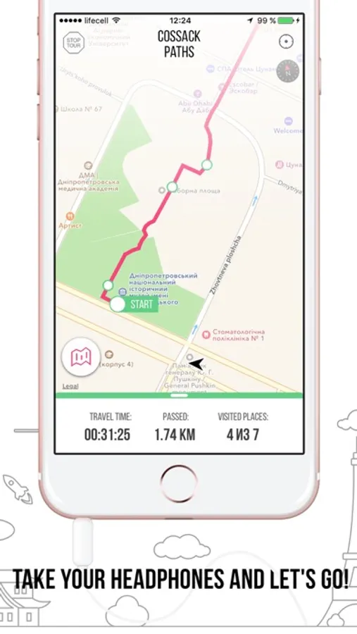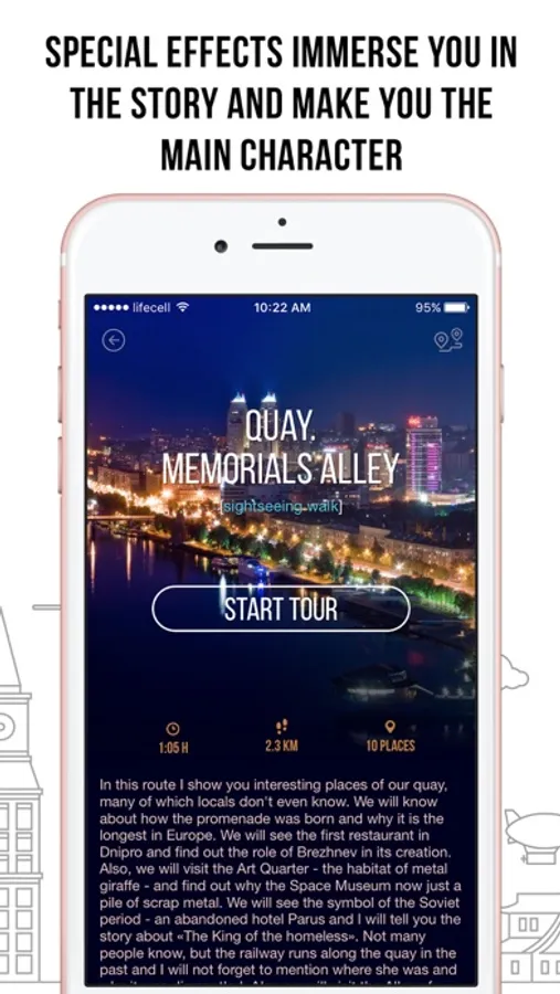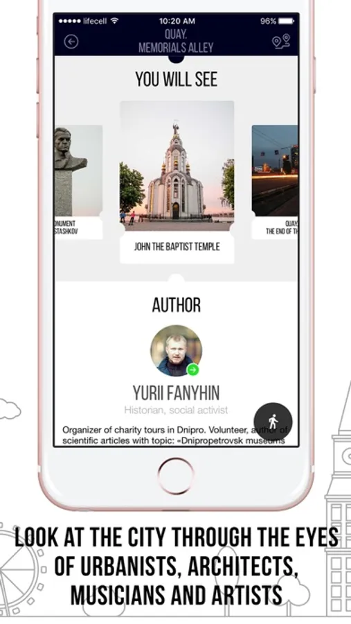 This's an application with audio walks. Don't confuse with audio guide! It's the walks! All the time your virtual storyteller will be with you. With him you will explore the city, interact with surrounding objects and cognize everything.