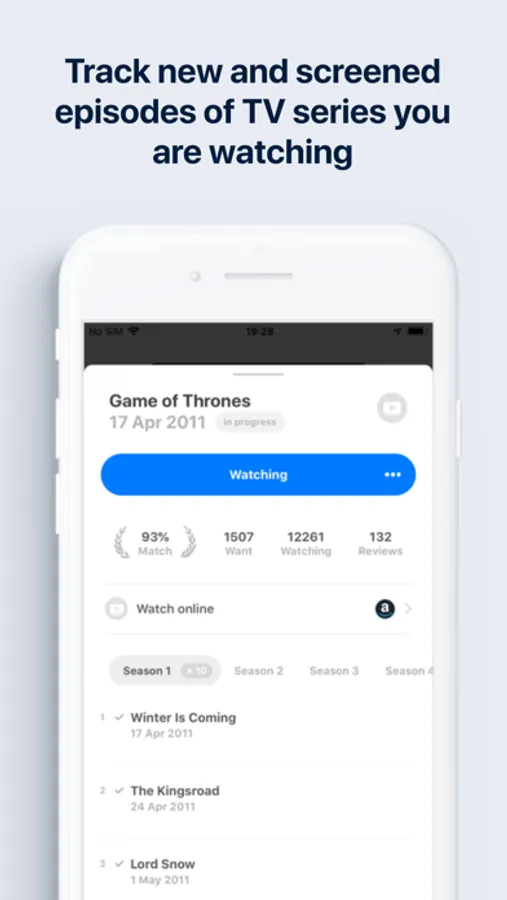 In case of series, you can manage your viewing experience by season, per episode. Track TV shows produced by Netflix, HBO, FX, FOX, The CW, NBC and BBC. Must is going to notify you when new episodes are aired or available for streaming.