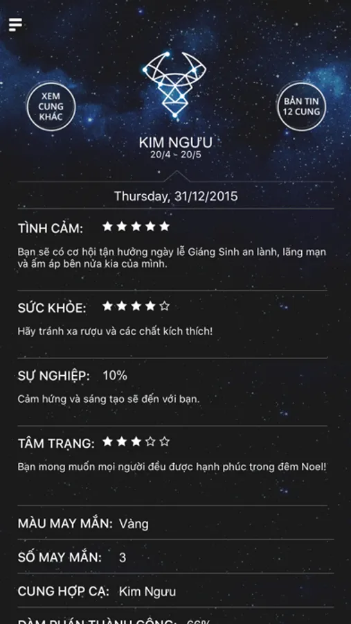 - Nhận thông báo khi có tử vi mới hàng ngày