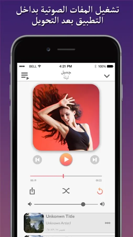 - تشغيل المفات الصوتية بداخل التطبيق بعد التحويل