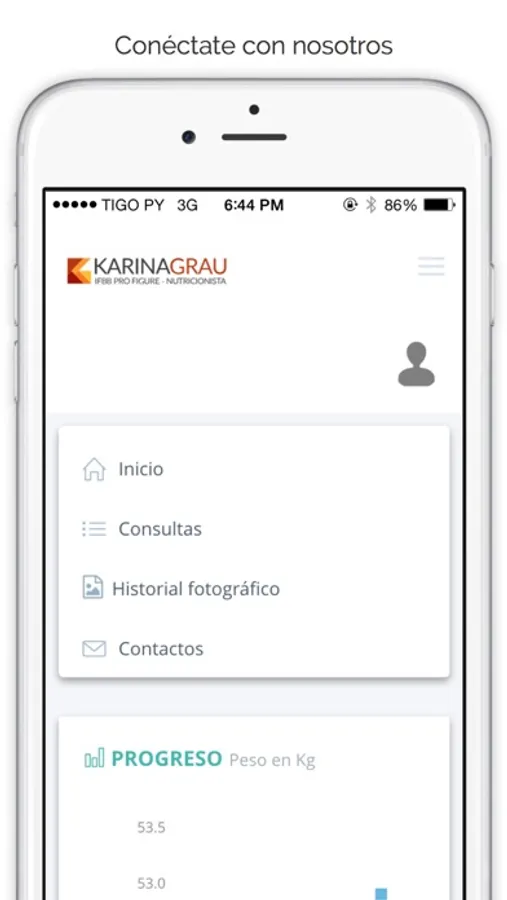 Conéctate con Karina y seguí la evolución de tu dieta desde tu celular.