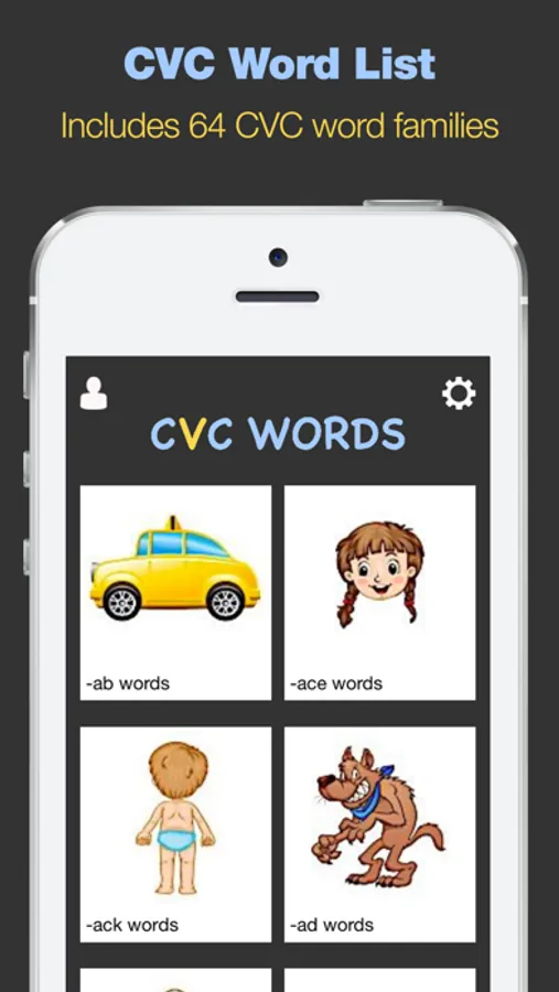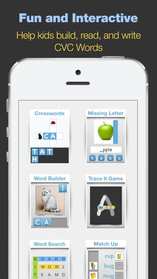 This hands-on app includes over 60 CVC word families!