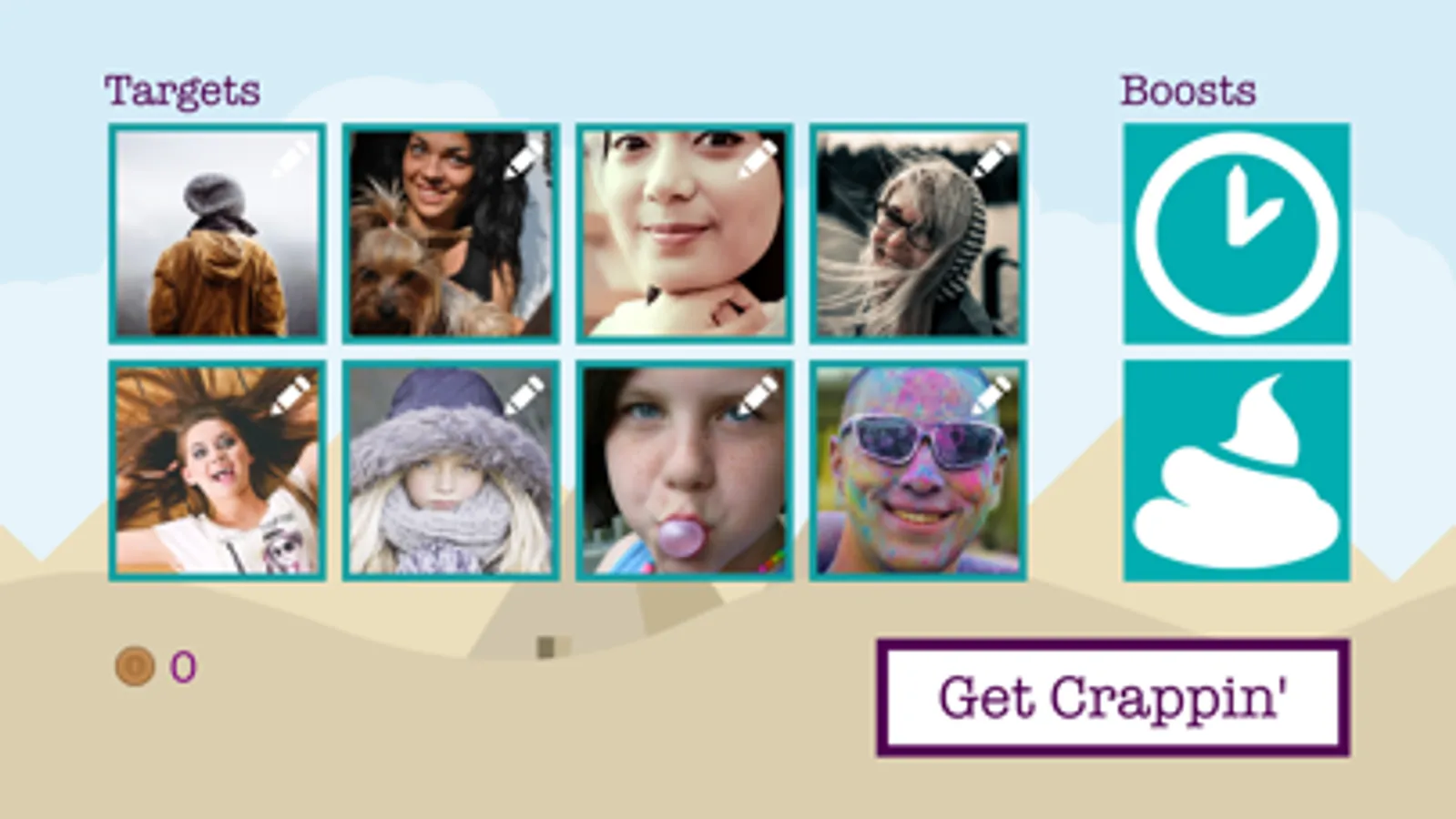Imagine a world where it's socially acceptable to crap on people... Well now it's here. Crappy Birds! is a new game where you can tap to crap. You will have 20 seconds to crap on as many people, objects or whatever as you can.
