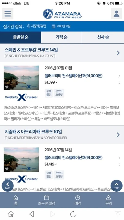 • 관심 일정 및 요금을 이메일, 문자 또는 SNS로 공유하실 수 있습니다.
