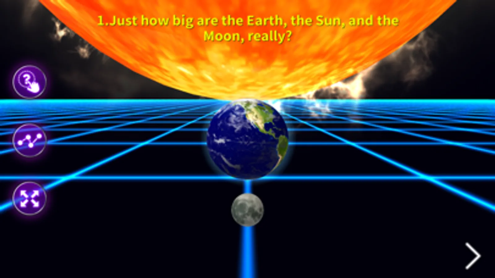 Feel the answers through 3D simulations while following the steps, beginning with comparisons of the sizes of the Sun, the Moon, and the Earth.