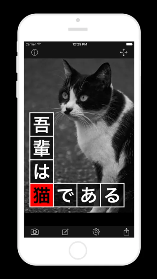 入力したテキストを1文字ずつ箱に入れて写真にレイアウトできるアプリです。某ドラマのオープニングのような画像を作成することができます