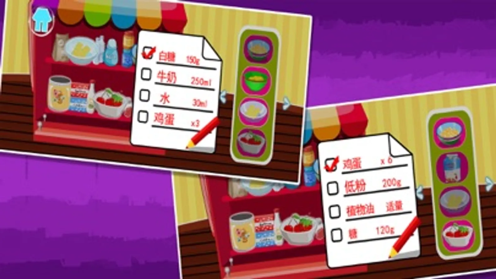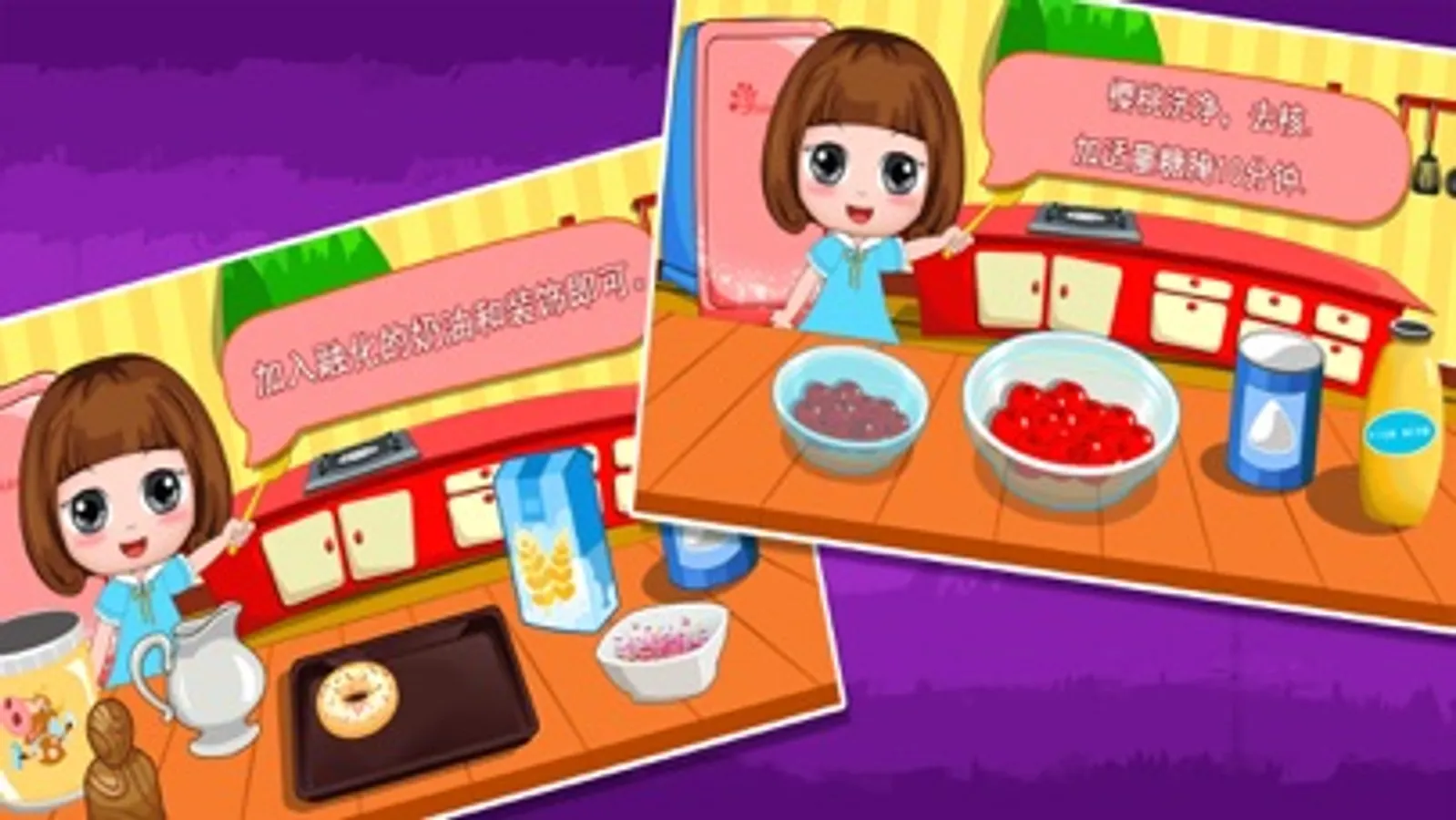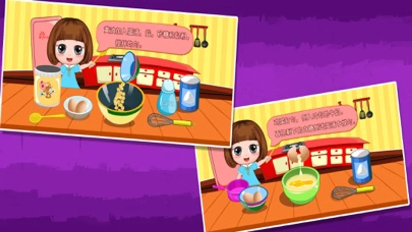 Parents and children need to interact during the game, such as how to express each step and what's the use of the tools, what is the name of the tools. When the kids had finish one task or answer the questions correctly, we should praise them which can effectively improve the child's confidend. So when they are facing problems or difficulties, they will be more confident to slove their problem. After game kids and parents can try to make some real desserts introduced in the game and eat together. This can effectively strengthen the relationship between parents and children.