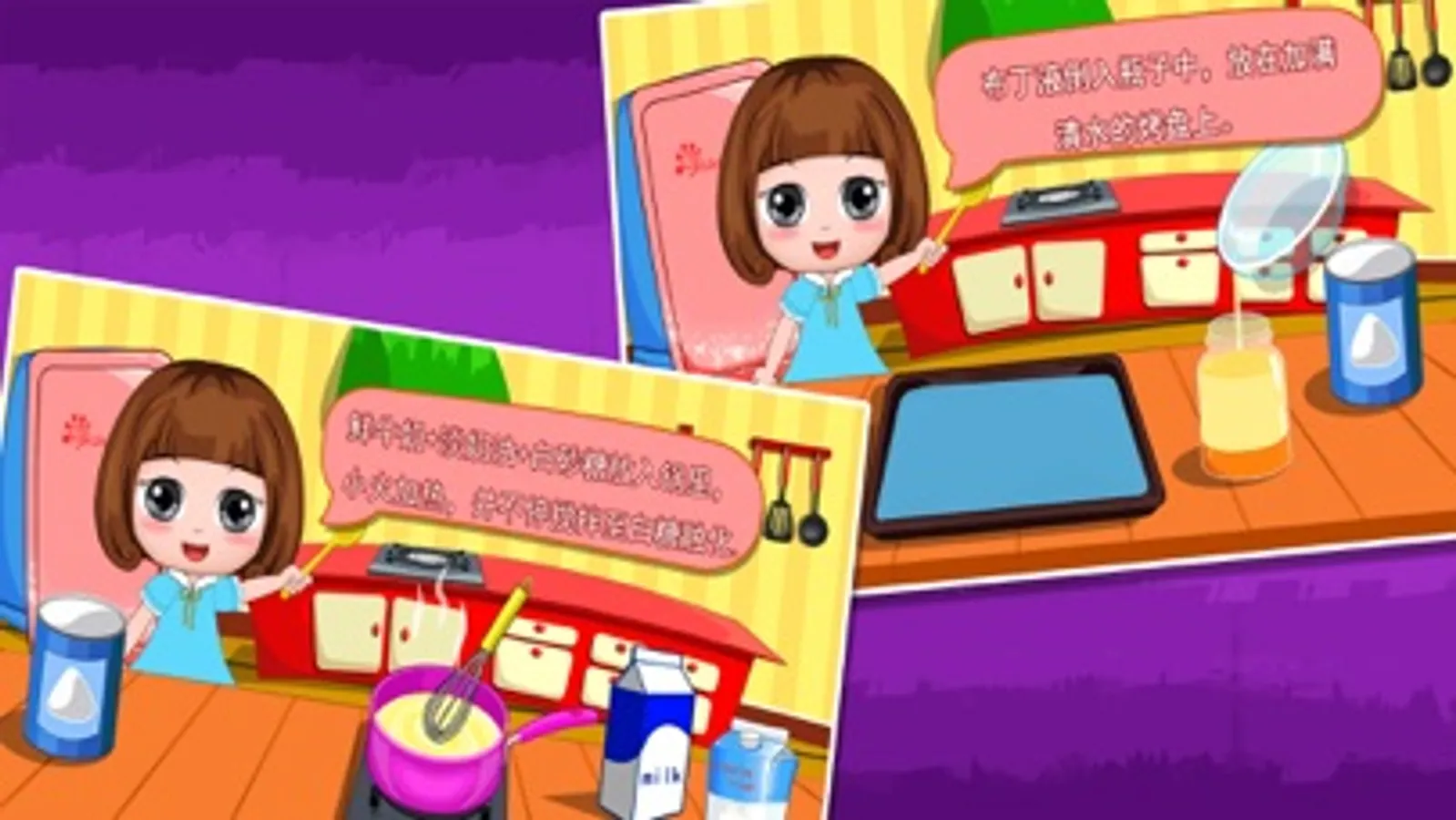This fun game is made base on the real dessert recipes, for children aged 2-5, the game is very simple to play, and it can effectively inspire children's thinking. On the other hand also allows parents to learn the right way of making desserts. The game contains more than one method of making desserts are brûlée, gold cake, biscuits, pudding, milk jelly, donuts, cheese and cherry cake.