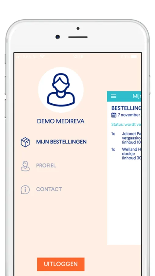 Via de gratis MediReva bestelapp kunnen klanten van MediReva 24 uur per dag, 7 dagen per week een bestelling plaatsen voor hulpmiddelen en verzorgingsmaterialen, zoals stoma-, incontinentie- en wondzorgmaterialen, medische drink- en sondevoeding en hulpmiddelen t.b.v. diabetes.
