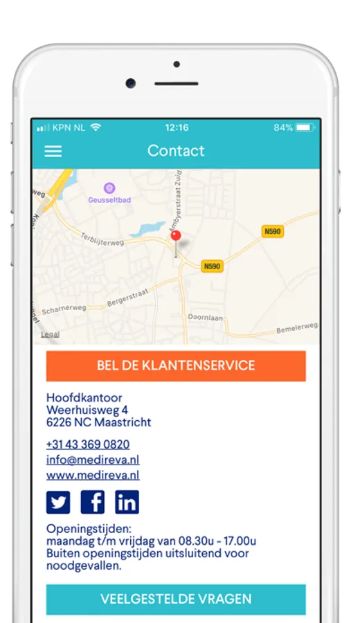 Tot slot beheert u in de bestelapp eenvoudig uw klantgegevens en vindt u alle contactgegevens en openingstijden van MediReva in één overzichtelijk scherm. Zo heeft u op een vaste plek alle belangrijke gegevens van MediReva altijd bij de hand!