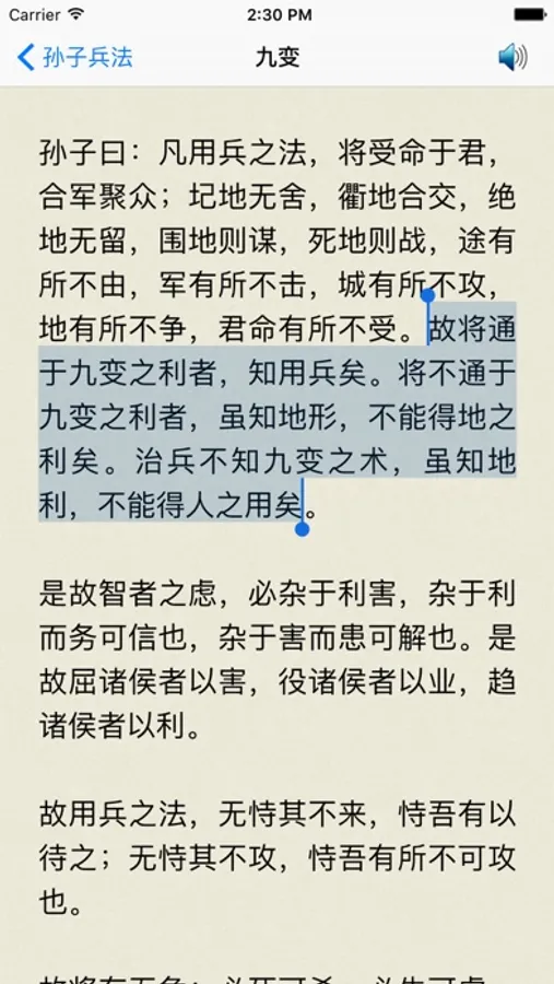 点击右上角的喇叭则阅读选定的文本,不选定文本则阅读全文。再点击喇叭则停止声音。