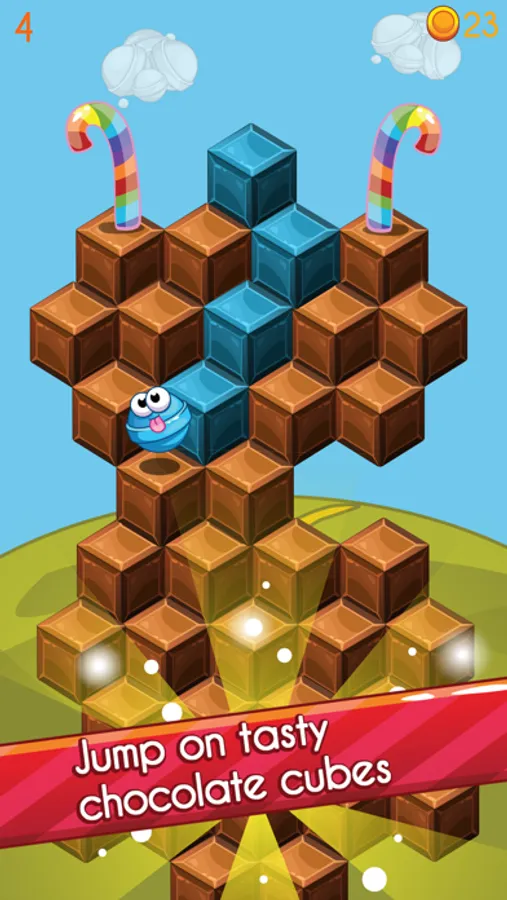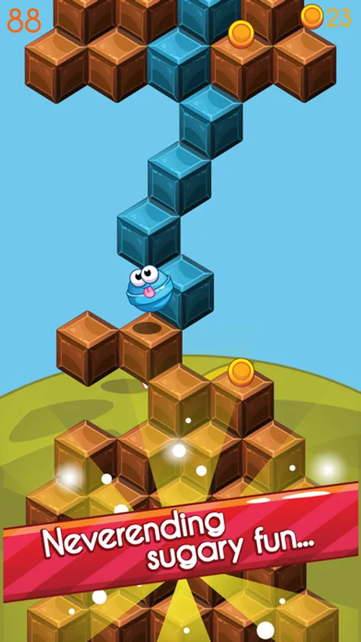 Tap on the screen to change the direction of the character, avoid falling off the chocolate cubes.
