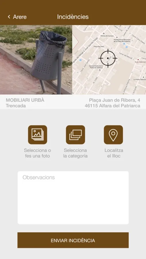 Todas las incidencias son registradas, analizadas y remitidas al departamento responsable. El registro de la incidencia se hace mediante geolocalización para determinar el lugar de la incidencia.