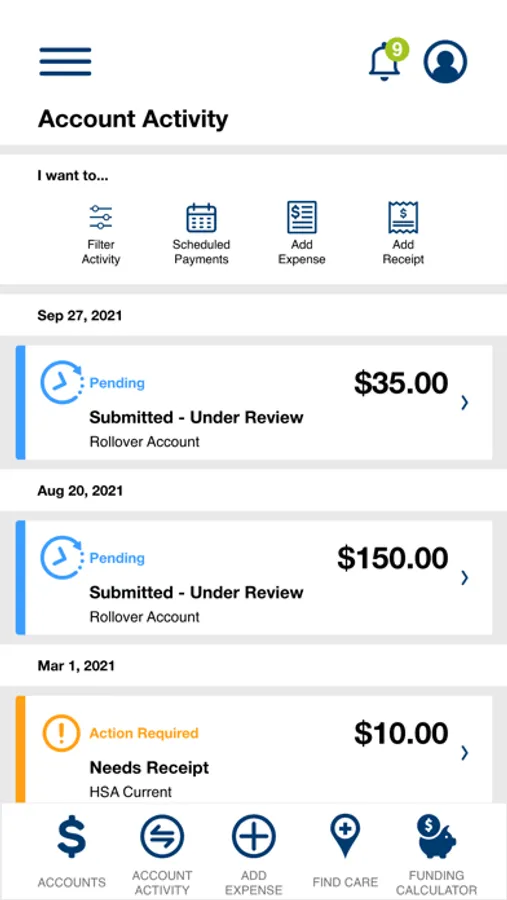 • Health Savings Account balances and details