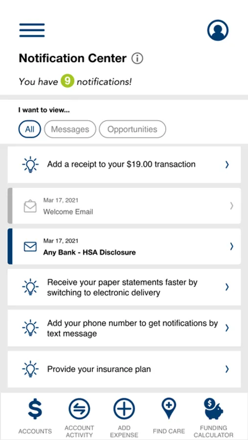 • Ability to fund HSA deposit account from checking/savings accounts