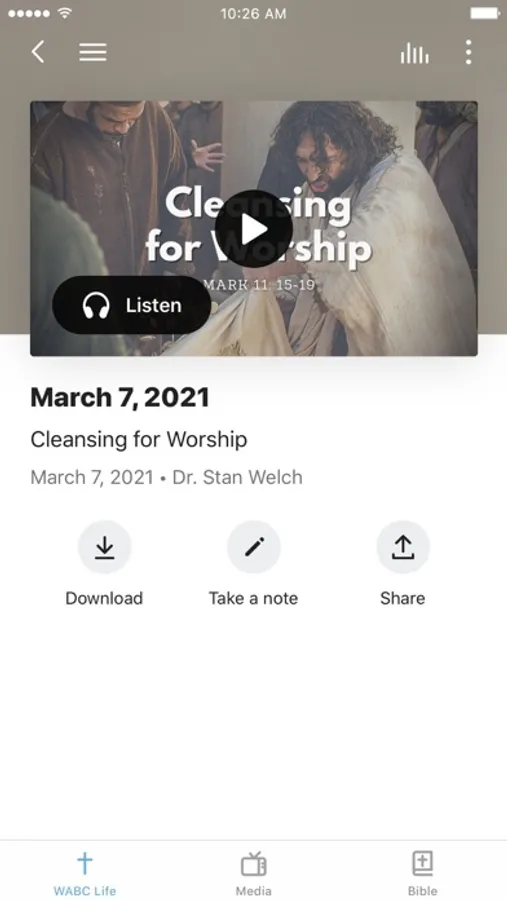 This App features weekly messages from WABC's Pastoral Staff including in depth series from our Senior Pastor, Dr. Stan Welch as well as Event & Calendar info, Schedules, Text & Audio versions of the Bible and more!