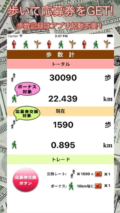 (歩数はアプリを起動しなくても記録されます。iPhoneを持って歩くだけでOK!)