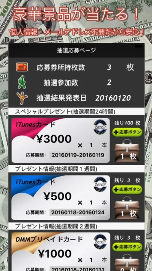 ・当選時もプレゼントはアプリ内でギフトコードを配布するため【メールアドレスも不要】です。