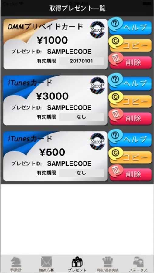 本アプリの懸賞の対象となっているギフトコードは下記のとおりです。