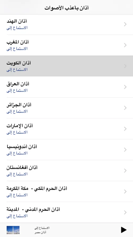 تستطيع الإستماع للأذان بصوت الكثير من القرآء وحسب الدوله -