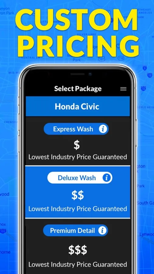 MobileWash is the most affordable on-demand car wash app in the industry. Our proprietary software uses your service location and vehicle type to ensure you get the best price.
