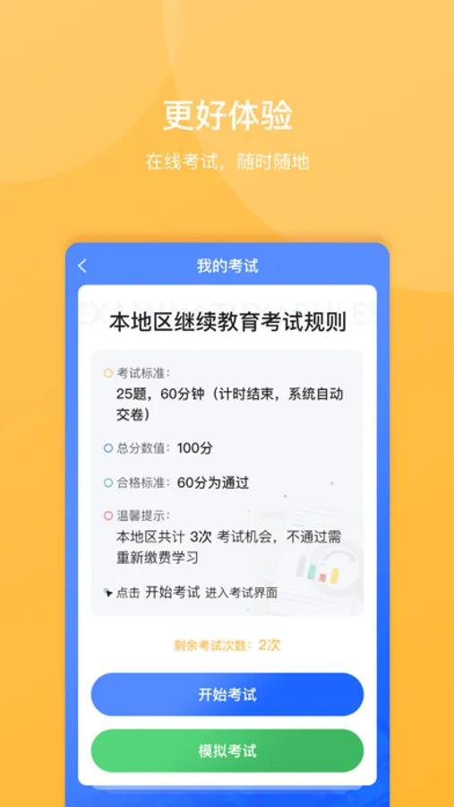 2、更多功能:选择地区,精准登陆,支持购买、选课、听课、考试,一站式完成继教学习全流程;精准记录学习进度,学习状态一目了然;
