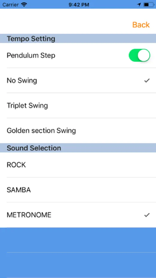 -- (No Swing/Triplet Swing/Golden selection Swing) select a Swing type.